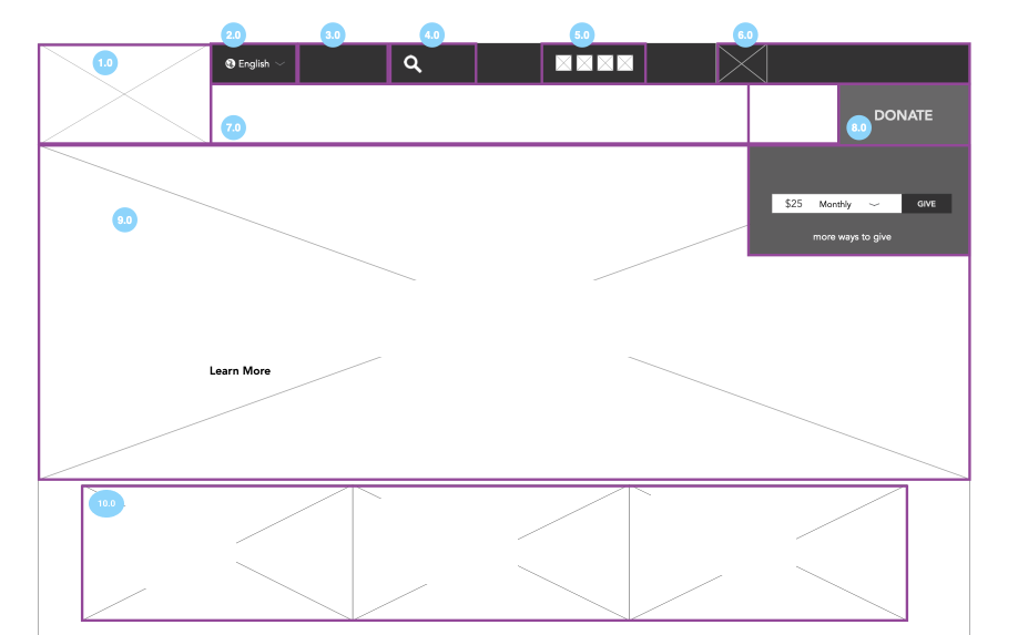 Next, I sat with the UX team and reviewed how they envisioned each component working, focusing on what they had discussed with the client, the purpose of each section, and the types of content that would flow into each area.